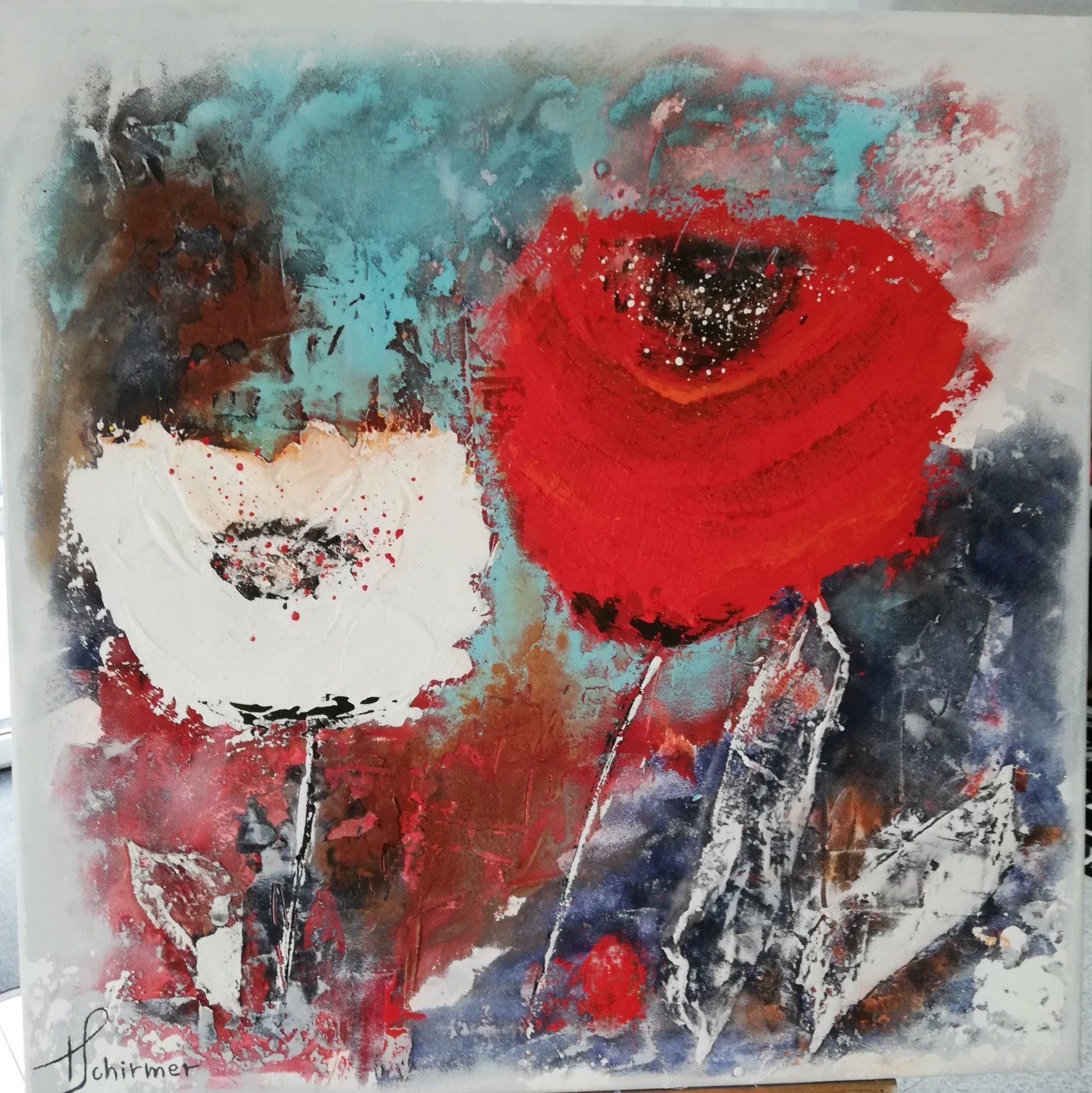 911.19 "Mohn Pärchen" Mixed Media auf Leinwand 80x80 cm X
