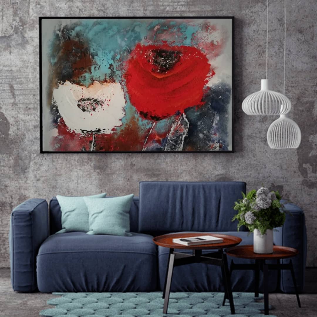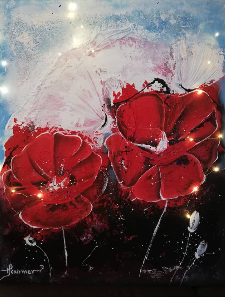 910.19 "Mohn Blumen" Mixed Media auf Leinwand 100x80 cm