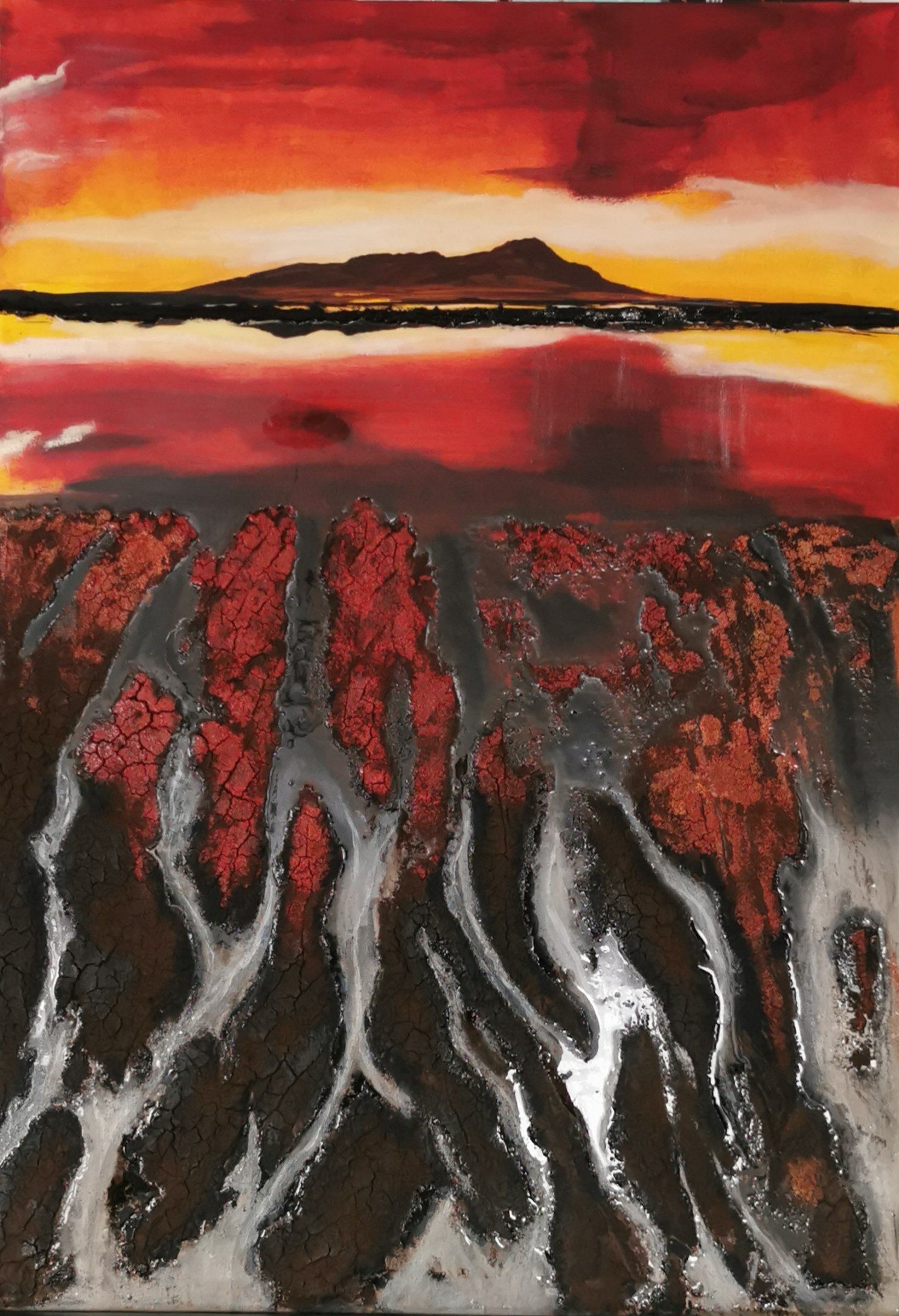 114.21 "Flammenmeer", Mixed Media auf Leinwand, 100x70 cm