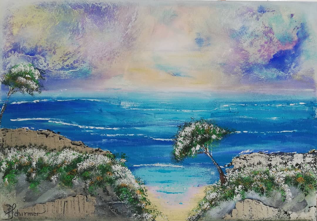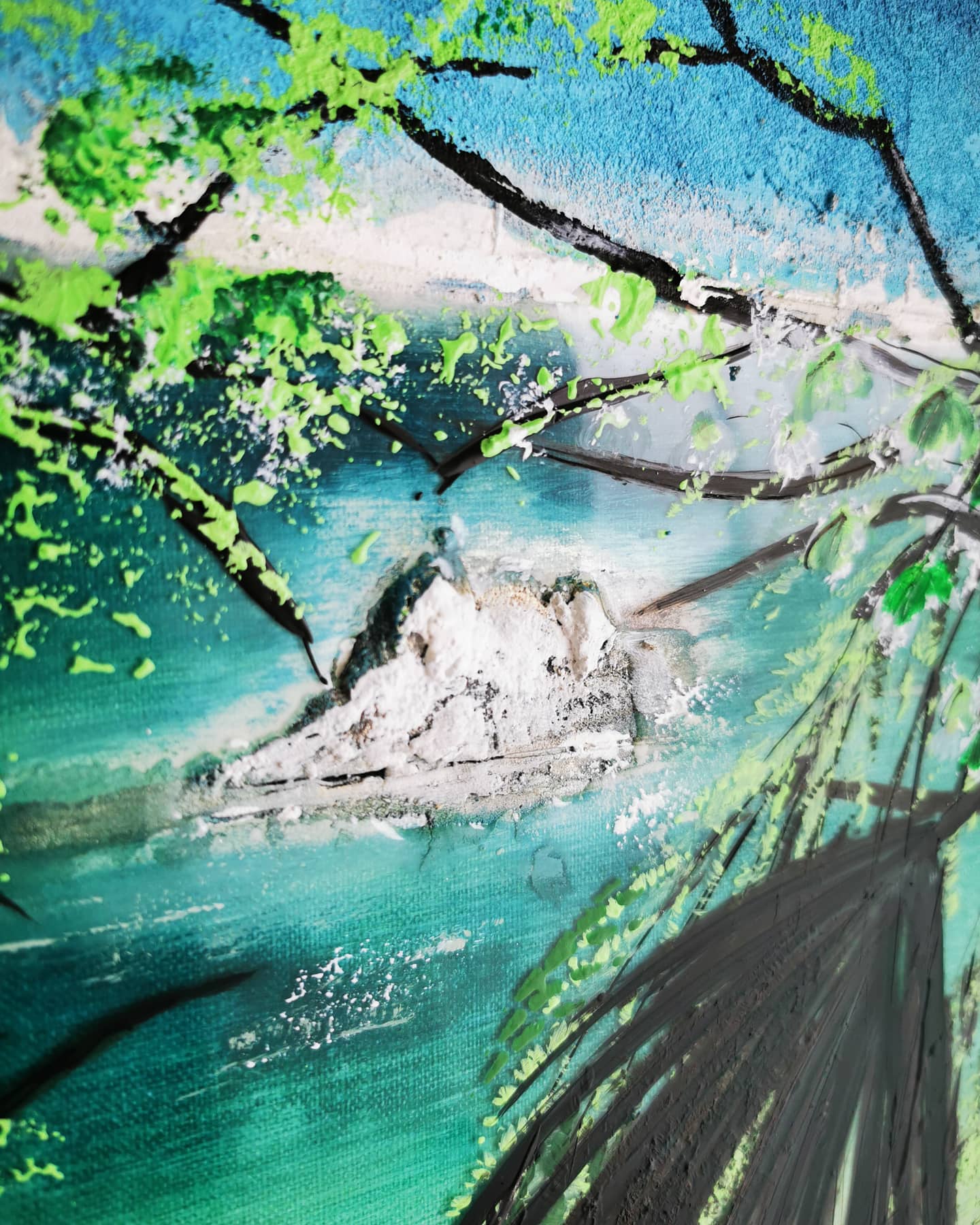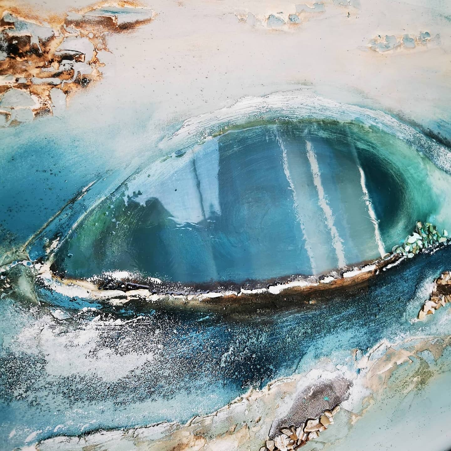 102.19 "Die Blaue Lagune", Mixed Media auf Leinwand, 100x70 cm X